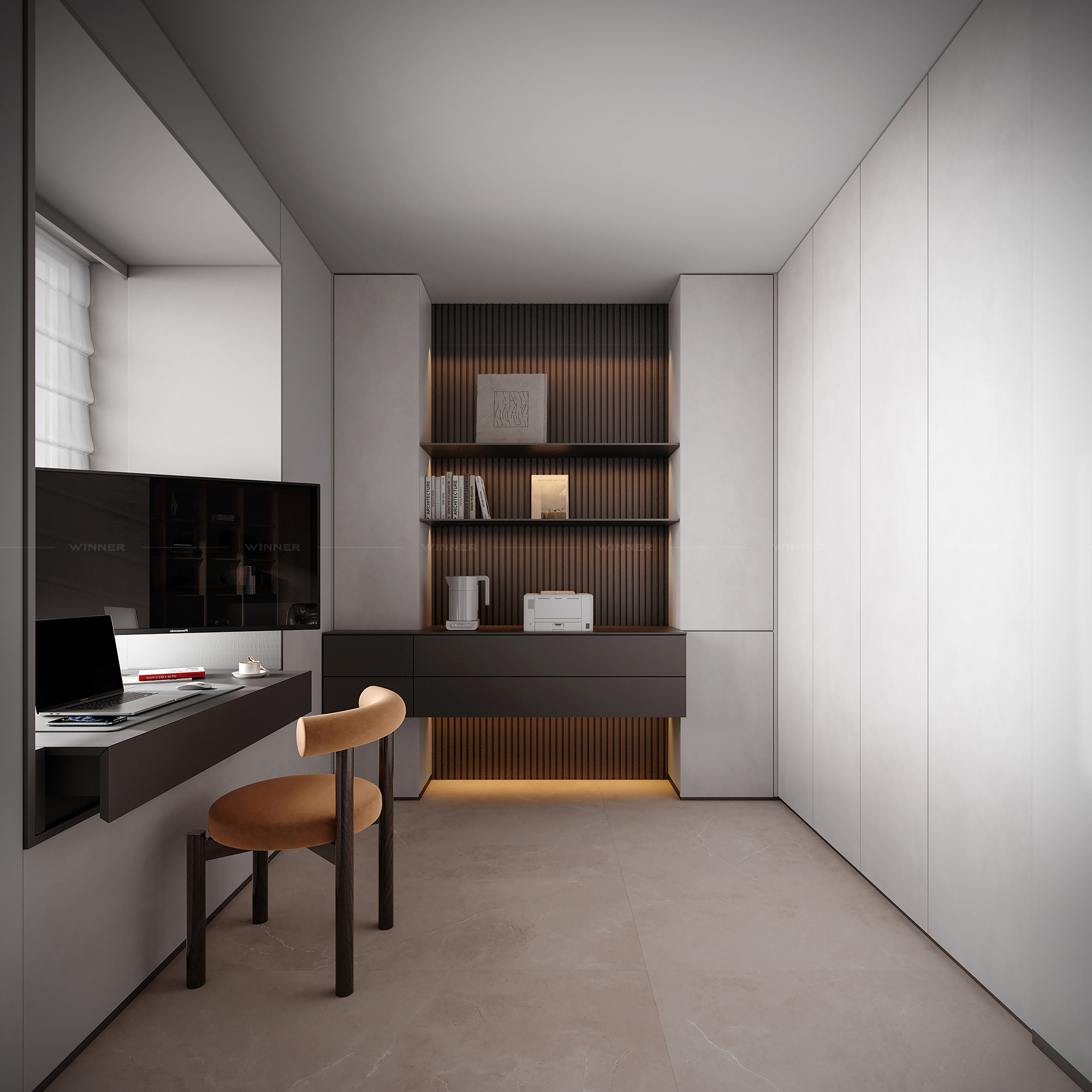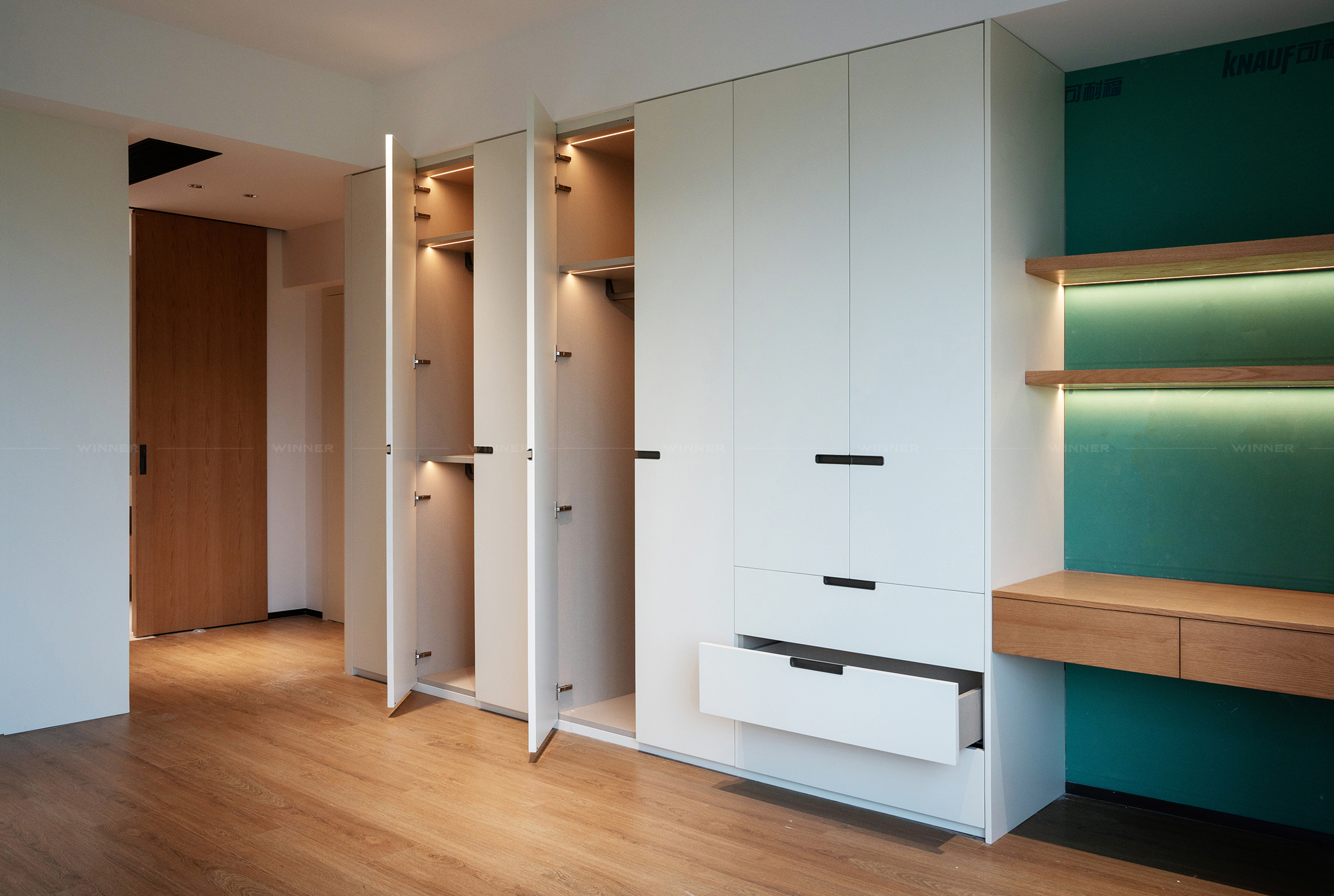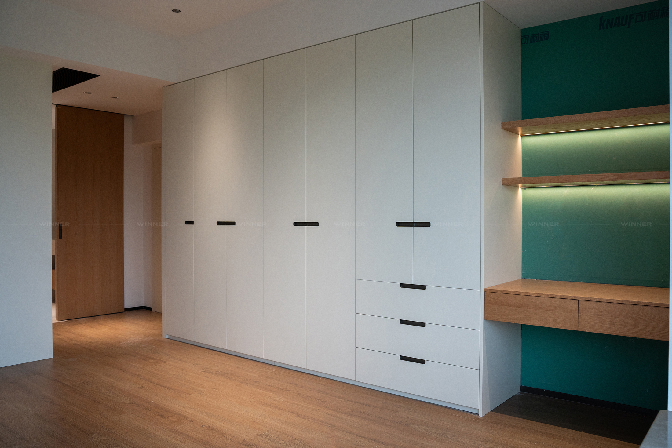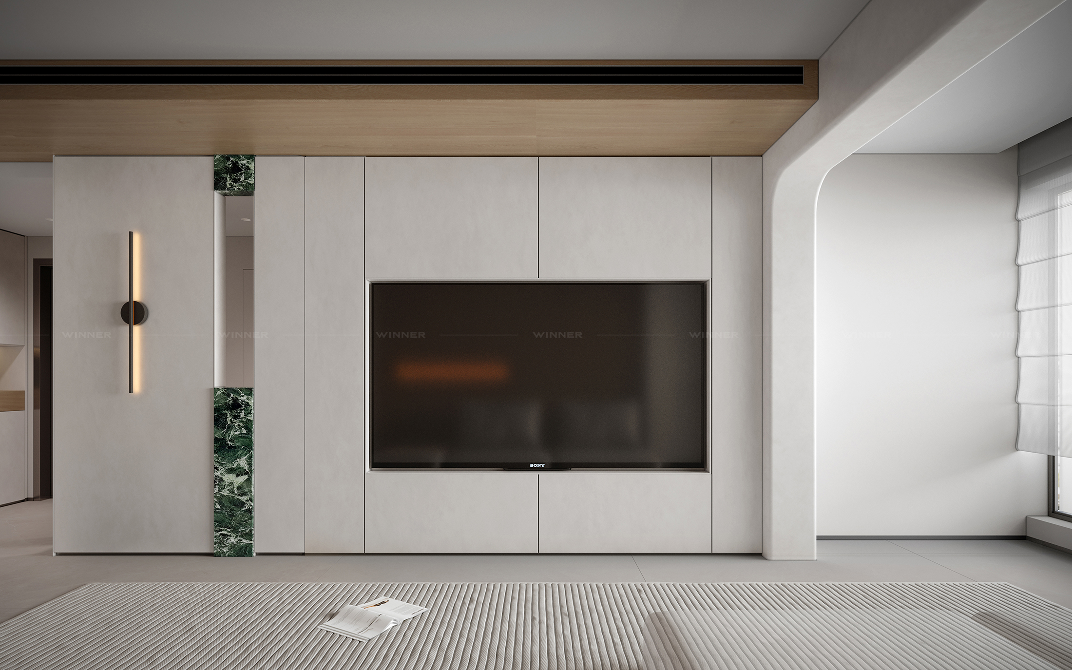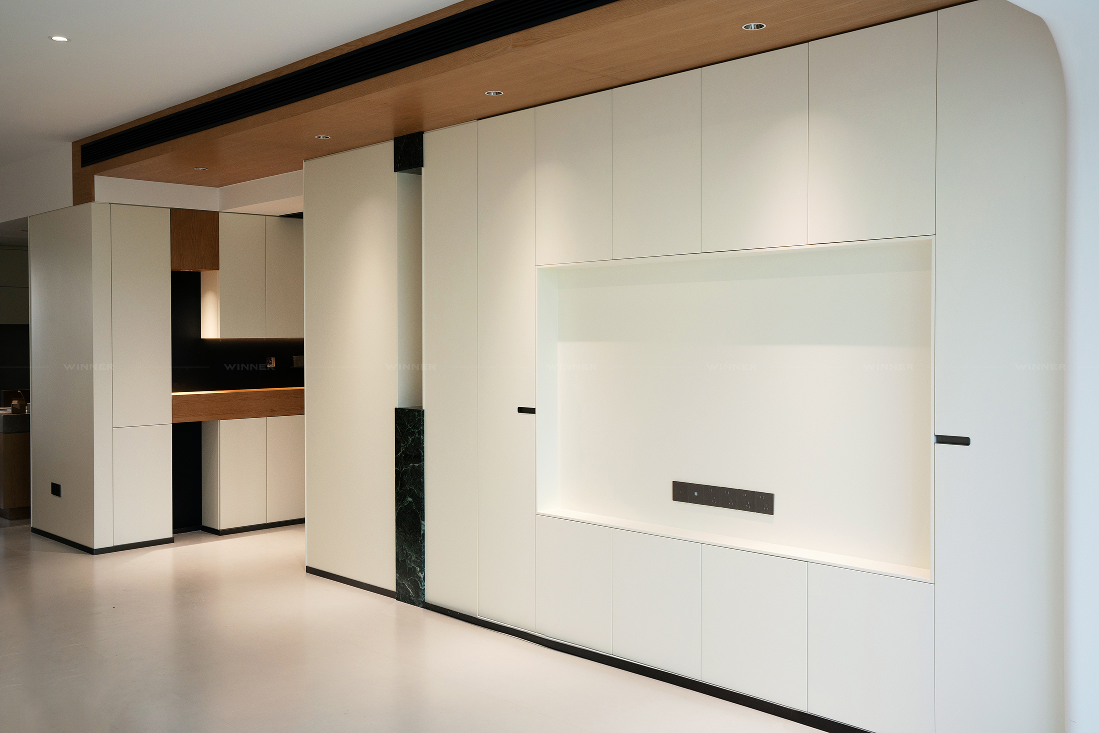 That TV wall? It’s not just a place for Netflix. We paired smooth wood panels with a pop of green marble (yes, marble!) and subtle lighting. It’s modern, it’s chic, and it ties the whole room together. The best part? It’s custom—so it fits the space like a glove, no awkward gaps or mismatched styles.