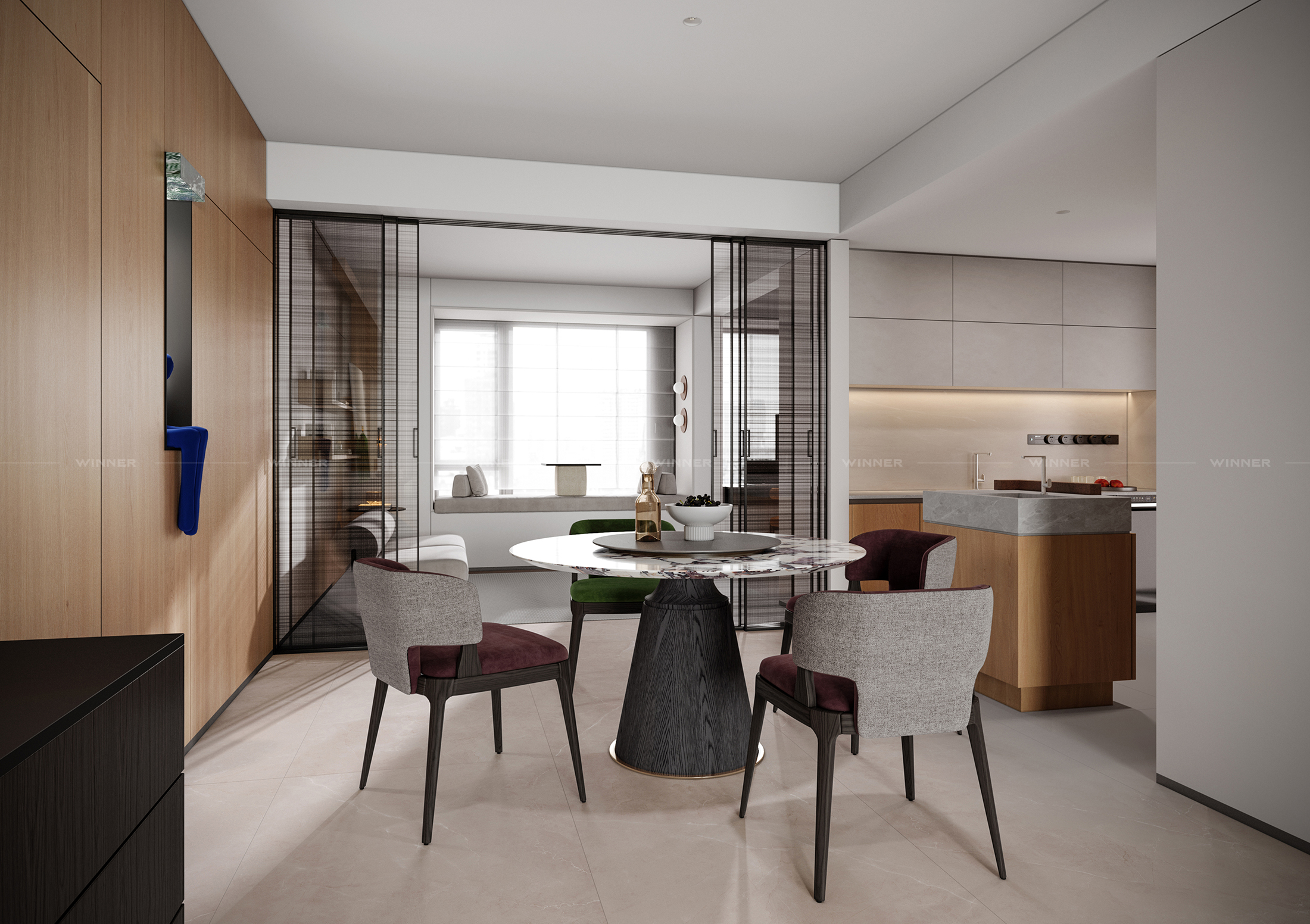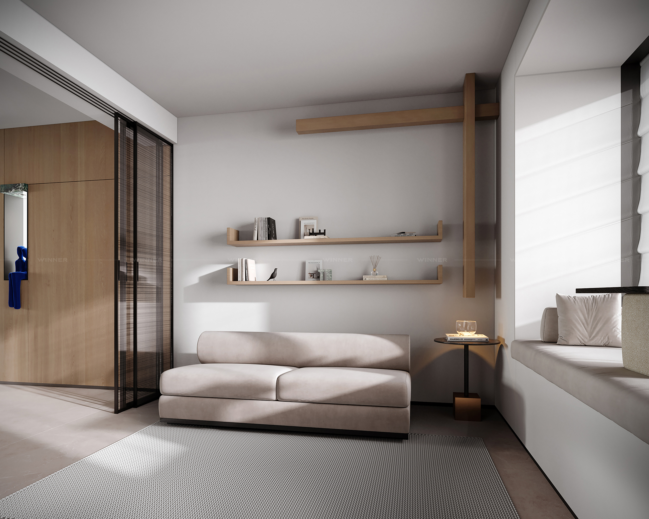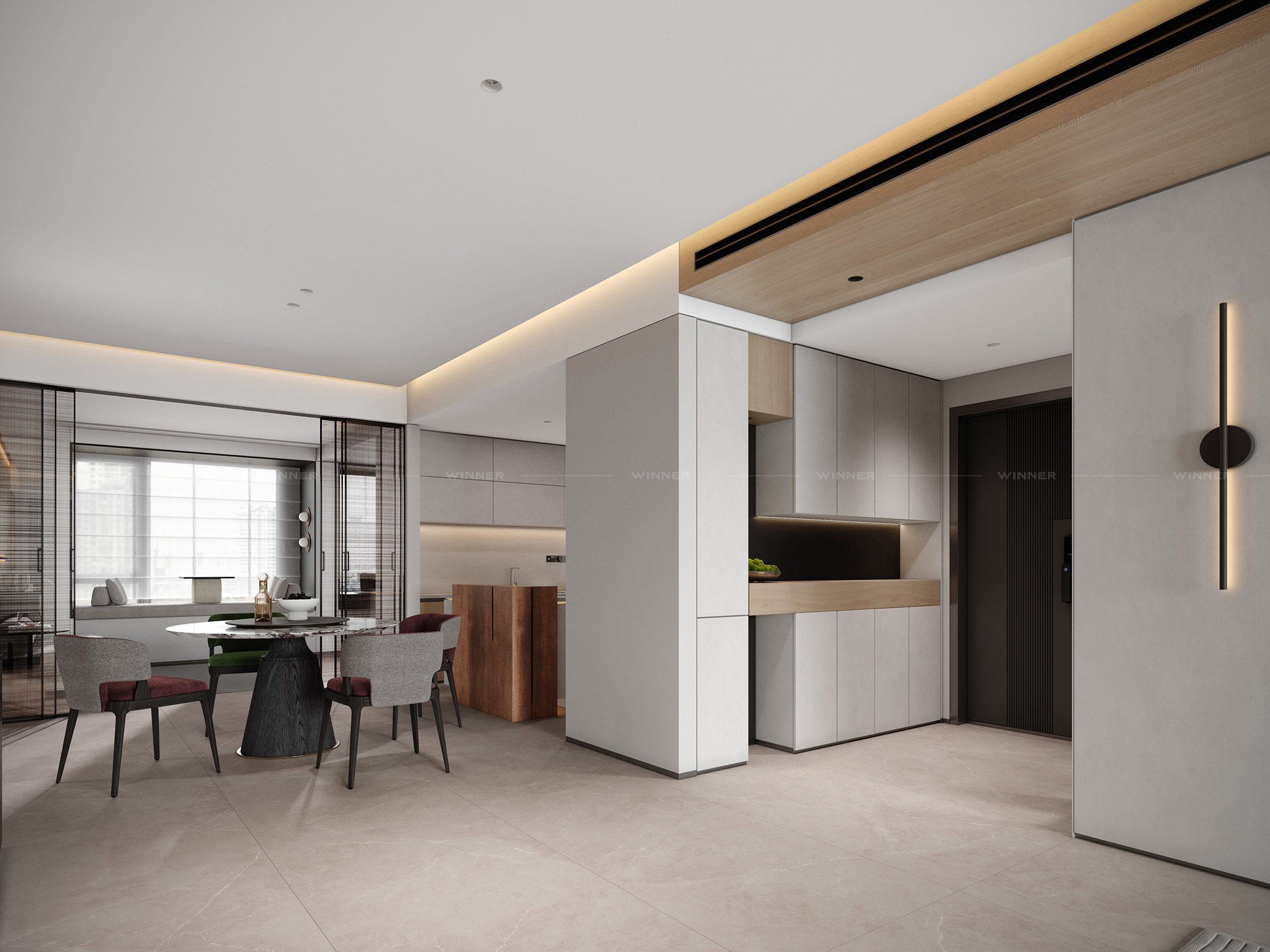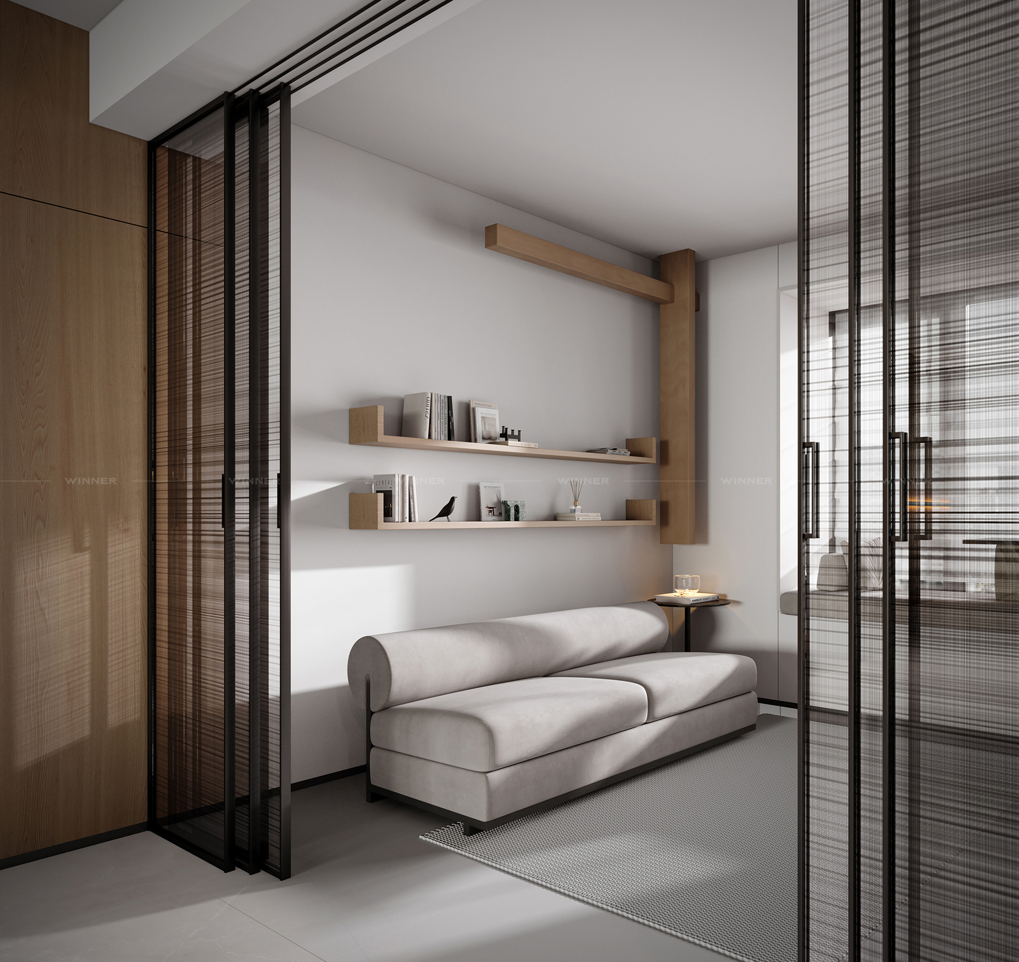 Define Spaces: No awkward room dividers—just sleek wood panels that separate living areas without closing them off.