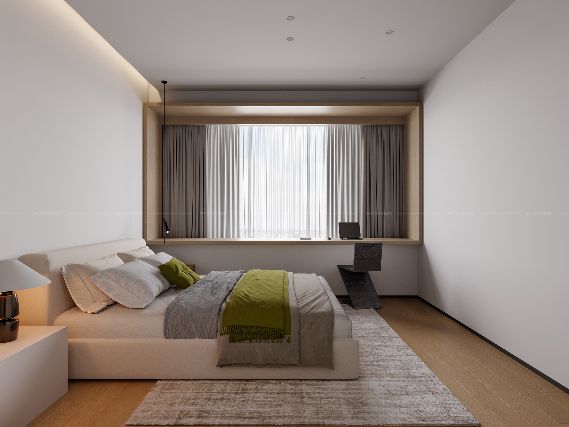 In the master bedroom, wood paneling frames the window like a work of art. It adds texture without overwhelming the space, so you can relax without feeling like you’re in a furniture showroom. Plus, the custom built-ins? They hide clutter while looking polished.