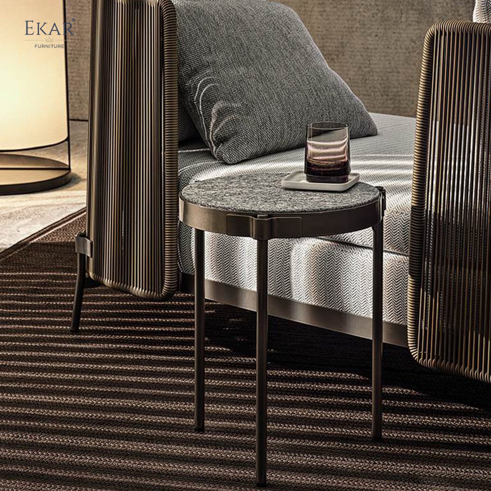 The Eclipse Minimalist Side Table series by EKAR FURNITURE is a definitive statement in contemporary refinement, designed to anchor high-end spaces with visual clarity and structural elegance. This collection features a strikingly slender metallic frame that supports a variety of premium surfaces, from textured natural stone to sleek tempered glass. The design philosophy focuses on the "weightless" aesthetic, allowing these tables to integrate seamlessly into modern layouts without overwhelming the room’s volume. As a cornerstone of our living room furniture collection, the Eclipse series is engineered for those who demand a functional accessory that functions as a piece of industrial art.
