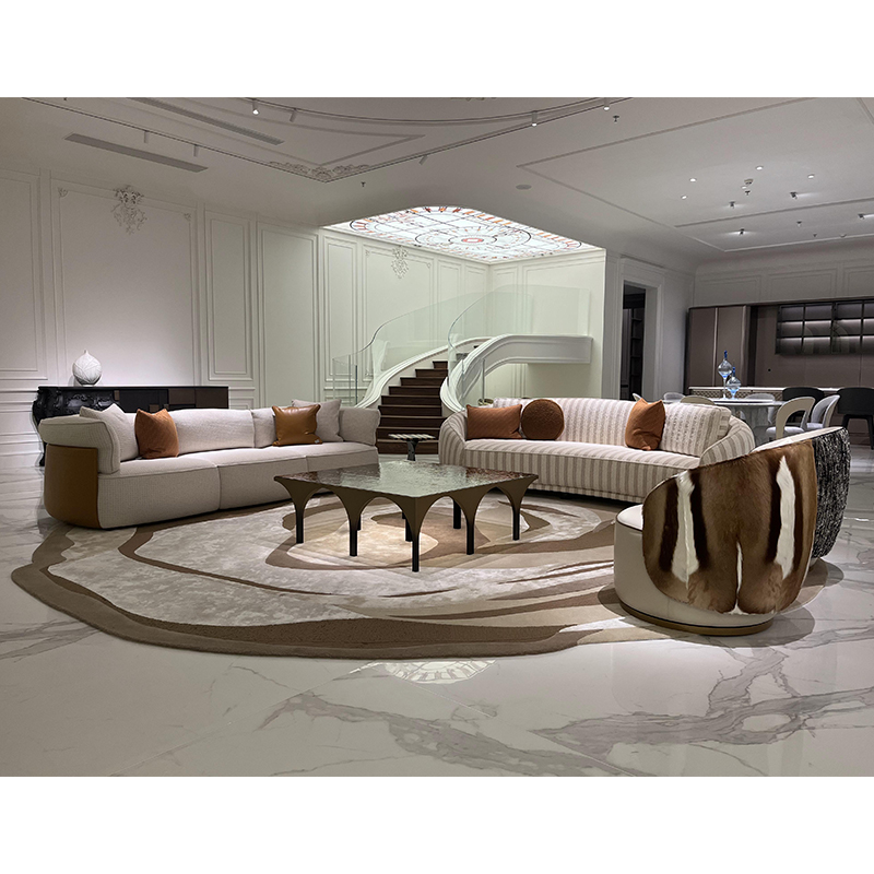 The base's unique design, characterized by intersecting geometric forms, adds a sculptural element to the piece. This artistic structure not only ensures stability but also serves as a focal point, reflecting EKAR's commitment to innovation and detail.