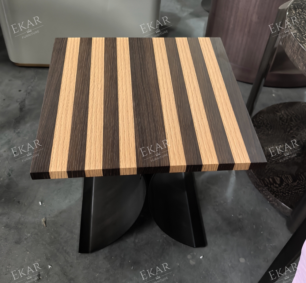 EKAR Furniture introduces a modern side table that seamlessly blends contemporary aesthetics with timeless craftsmanship. Inspired by minimalist design principles, this piece features a distinctive base crafted from stainless steel, providing both stability and a sleek appearance.