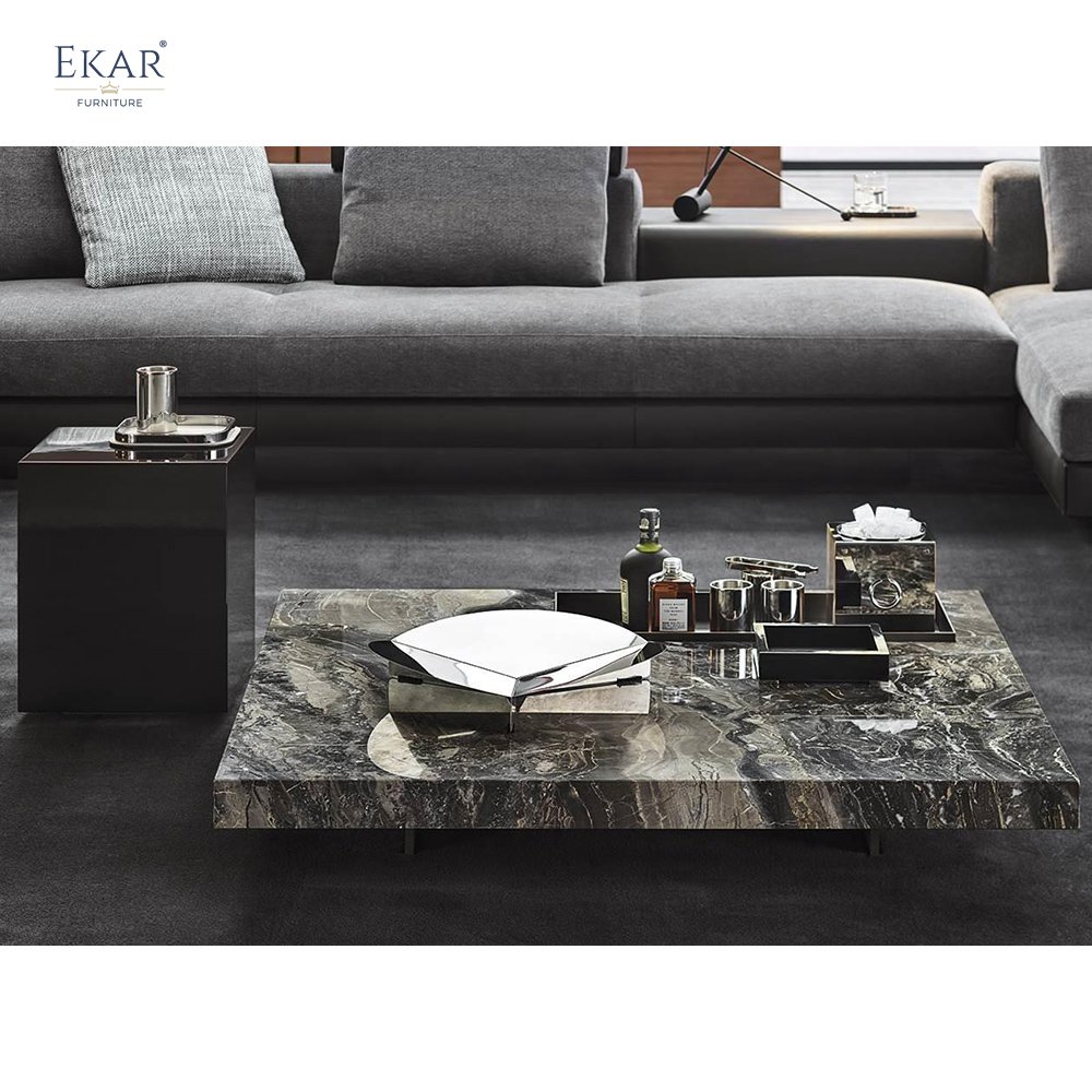 Manufacturing, Export & Custom SupplyEKAR FURNITURE is a direct Foshan export furniture factory producing modern coffee tables, living room tables, and contemporary furniture for international wholesale buyers, interior designers, hospitality procurement teams, and furniture retailers across Europe, North America, the Middle East, Southeast Asia, and India. As a China furniture factory with full in-house wood veneer fabrication, marble and sintered stone top production, metal rail base construction, and quality inspection, we produce the Slab Coffee Table in square and rectangular configurations across a range of sizes to consistent export-grade quality on both standard and custom orders. Buyers who import modern coffee tables from China — including those sourcing premium living room tables into India, Southeast Asia, and the Middle East — work directly with EKAR FURNITURE's Foshan custom furniture factory for OEM and ODM production. Custom top material and finish, tray insert material, base finish, table size, and top edge profile are all available subject to minimum order quantities. Every Slab Coffee Table leaving our Foshan manufacturing facility is inspected before shipment for top surface and edge finish quality, tray insert fit and material consistency, base rail alignment and finish, and structural stability under load.