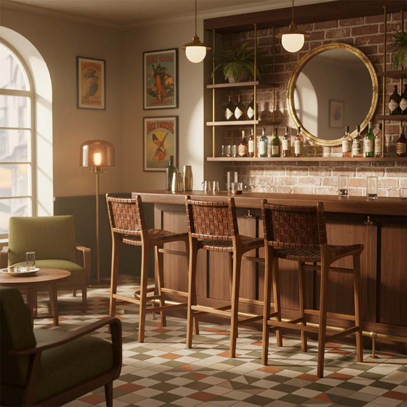 The beauty of the EKAR Sonoma lies in its versatility and ability to connect different zones within an open-concept home. As kitchen and living areas increasingly merge, the need for furniture that transitions smoothly between these spaces becomes paramount. The Sonoma’s warm wood tones and leather texture allow it to harmonize with living room furniture such as leather sofas, wooden coffee tables, or woven rugs. It acts as a transitional piece that carries the design language of the living area into the kitchen, creating a cohesive interior flow. Whether placed in a modern farmhouse kitchen, a bohemian loft, or a minimalist scandi-style apartment, this stool adapts to its surroundings. It adds an element of "earthy luxury" that softens industrial metals and complements stone countertops. By choosing the EKAR Sonoma, you are investing in a timeless design that enhances the aesthetic unity of your entire home.